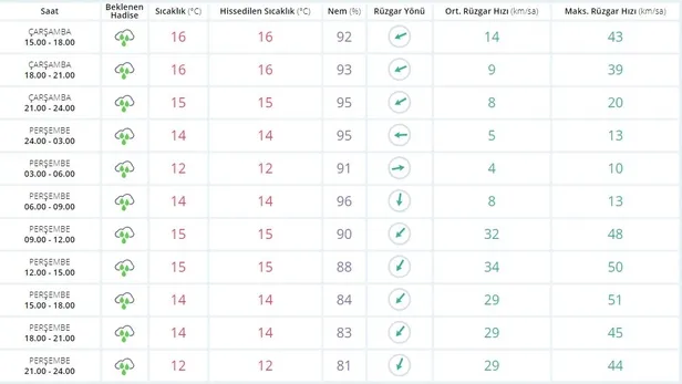 ''Marmara'da rüzgarın yarın öğle saatlerinden itibaren doğu ve kuzeydoğu yönlerden 6 ila 8 kuvvetinde (50-75 km/sa) fırtına şeklinde esmesi tahmin ediliyor. Fırtınanın aynı gün akşam saatlerinden sonra etkisini kaybetmesi bekleniyor.''