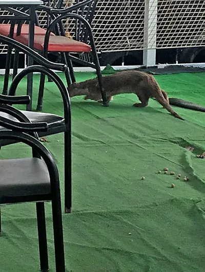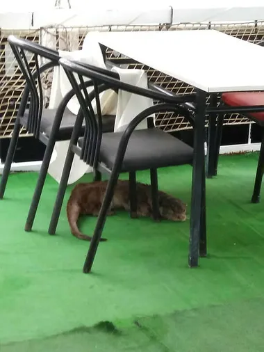 Fırat Nehri'nin kenarındaki Aşağı Halfeti'de bir kıyı restoranın bahçesinde masaların altında dolaşan su samurunu gören çalışanlar, İlçe Tarım ve Orman Müdürlüğüne bildirdi.
