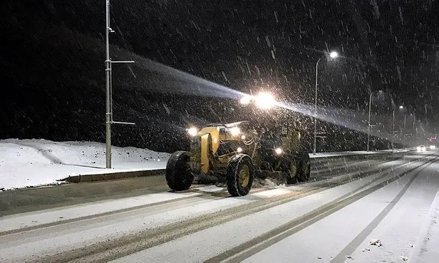 Yüksek kesimlerde aralıklarla etkisini sürdüren kar dolayısıyla bazı araçlar yolda ilerlemekte güçlük çekti.