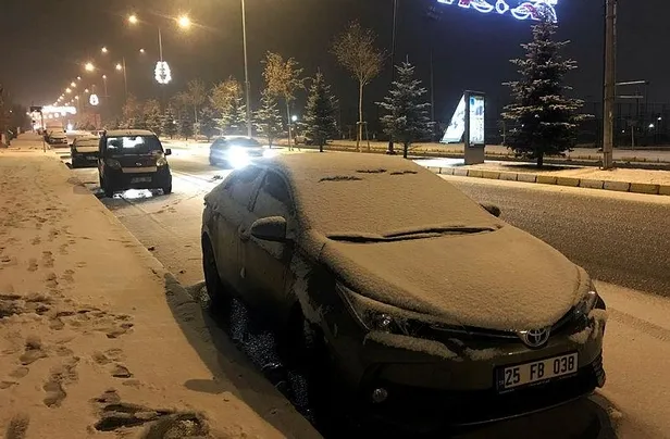 Erzurum, akşam saatlerinde etkili olan kar sebebiyle beyaza büründü.