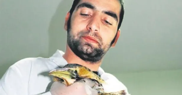 Veteriner hekim Sancar Çelik, kuşla yakından ilgileniyor.