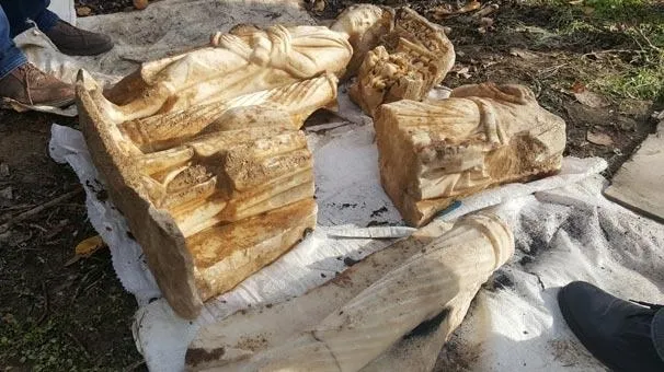Gözaltına alınan 4 şüpheliden Mehmet D.'nin ev ve eklentilerinde yapılan aramalarda, yaklaşık 1600 yıllık olduğu değerlendirilen ve Roma Dönemi'ne ait olduğu tespit edilen 90 santimetre boyunda ve 70 santimetre çapındaki Sidamara lahdine ait duvarın bir parçası ele geçirildi.