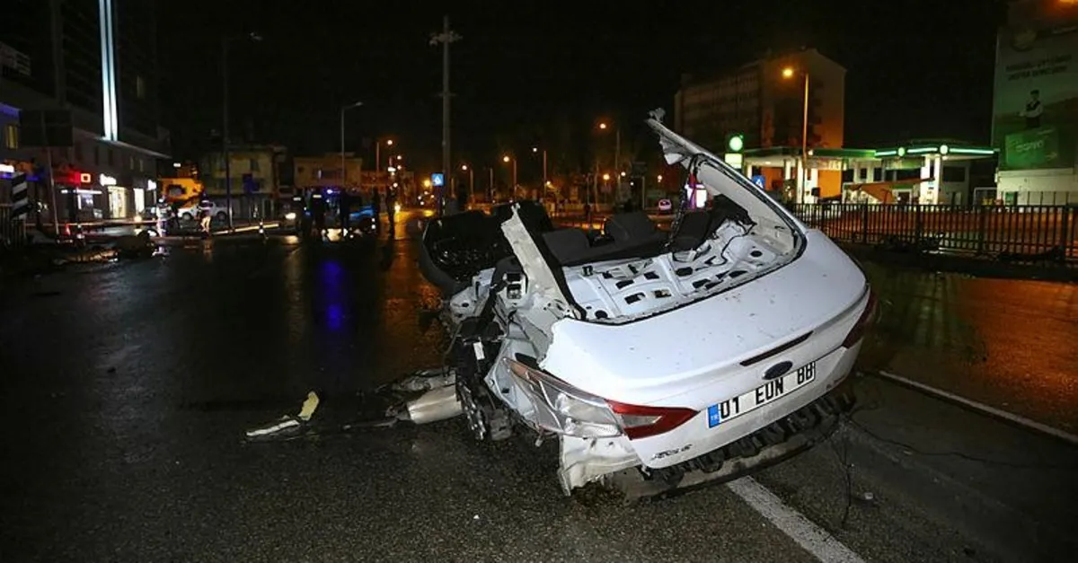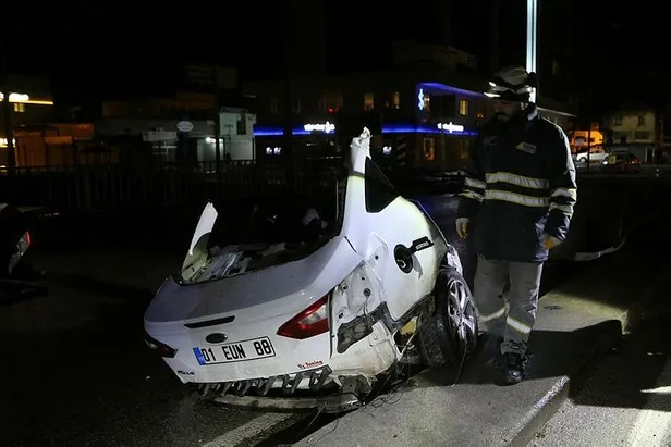 Onur Ali Y'nin kullandığı 01 EUN 88 plakalı otomobil, Karataş Caddesi'nde sürücünün direksiyon hakimiyetini kaybetmesi sonucu önce elektrik direğine, ardından köprü demirlerine çarptı.