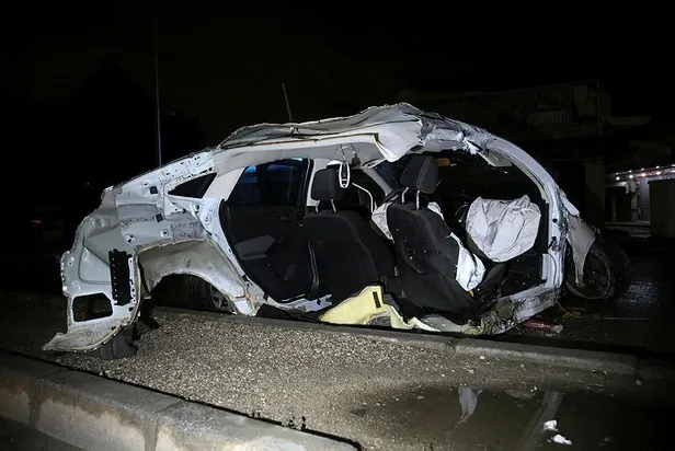 Adana'nın Yüreğir ilçesinde köprü demirlerine çarparak 5 parçaya ayrılan otomobilin sürücüsü kazadan yara almadan kurtuldu.