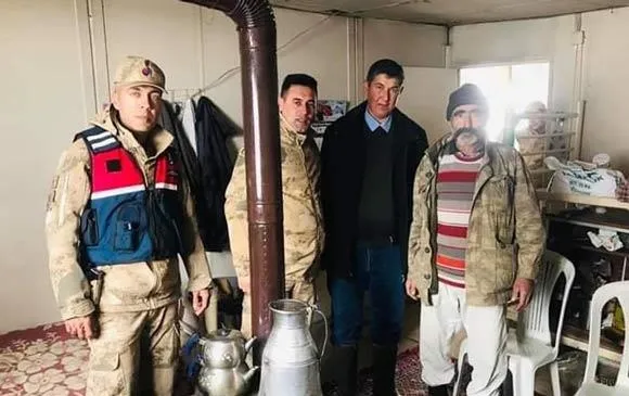 Kar kalınlığının yer yer 3 metreyi bulduğu Çiğşar Mahallesi'ndeki gölet inşaatında bekçilik yapan Cengiz Erkek ile dayısı Mustafa Erkek, bölgede mahsur kaldı.