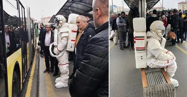 İstanbul'da Uzunçayır metrobüs durağında metrobüsün gelmesini bekleyen astronot kıyafetli bir vatandaş görenleri şaşırttı.