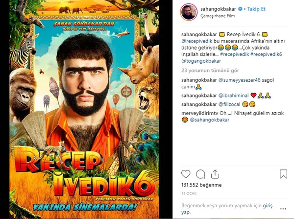 Şahan Gökbakar Instagram hesabından paylaştığı Recep İvedik 6 afişi ile binlerce beğeni aldı. Recep İvedik 6'nın Afrika'da çekildiği belli oldu, Afrikalı çocuklarla çekildiği fotoğrafını da paylaştı. Film yine izleyicileri kahkahaya boğmaya hazırlanıyor.