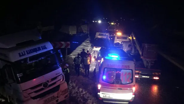 İlk belirlemelere göre 7-8 tırın aralarında olduğu 15 aracın karıştığı kaza alanına toplam 6 ambulans, 1 UMKE ve itfaiye ekipleri yönlendirildi.