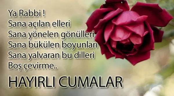 Ey Rabbim! Evimizden bereketi, dilimizden duayı, kalbimizden senin ve Resulünün sevgisini eksik etme. Dualarımızı kabul, ömrümüzü nurlu kıl. Amin. Hayırlı Cumalar.