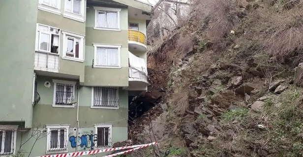 Eyüpsultan'da yaşanan toprak kayması nedeniyle zarar gören 4 katlı binadaki bazı daireler boşaltıldı.
