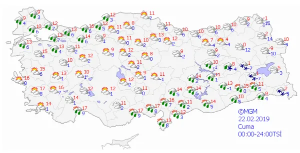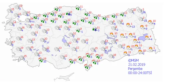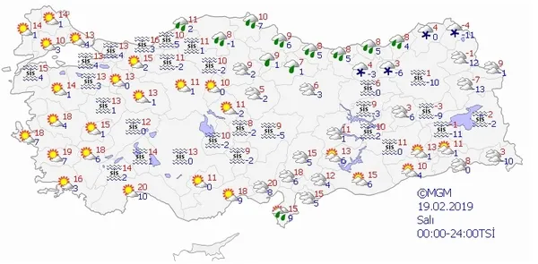 19 ŞUBAT 2019 SALI METEOROLOJİ HAVA TAHMİNLERİ