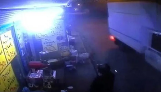 Bu sırada yanından geçen kişi, sırtına dokundu. Aniden irkilen Binici, arkasını döndüğünde yoldan geçen kamyonetin açılan kapağını fark etti ve anında eğilip ölümden döndü. Kamyonetin açılan kapağı, dükkanı geçtikten sonra bir evin duvarına çarptı. Bir süre üzerindeki şoku atlatamayan Binici, daha sonra güvenlik kamerasını izleyince fark ettiği kişinin kim olduğunu bulamadı.