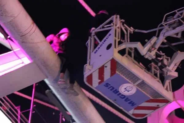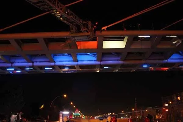 Kısa süre sonra olay yerine gelen itfaiye ekipleri, geniş güvenlik önlemi alarak şahsın ayaklarını sarkıttığı alanın altına hava yastığı açtı. Olay yerine gelen polis ekipleri ise şahsı ikna etmek için çalışma başlattı. Ekiplerin geldiğini gören şahıs ise ekipleri görünce elindeki ustura ile bilek kısımlarını kesti. Şahsın çıktığı üst geçidin korkuluk kısmına itfaiye aracının yardımı ile oluşan ekipler, 3 saat boyunca şahsı ikna etmeye çalıştı.