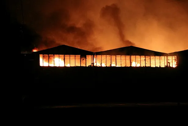 Öte yandan, fabrika çalışanları içeride bulunan malzemeleri dışarı taşıyarak kurtarmaya çalıştı.