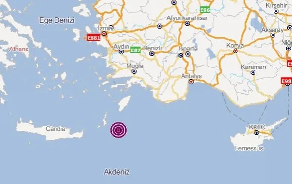 Akdeniz'de 4,8 büyüklüğünde deprem meydana geldi.