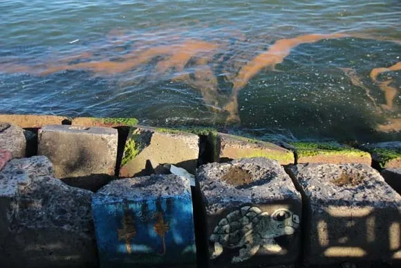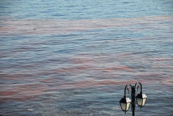 Plankton çoğalması nedeniyle sahilin bazı bölümlerinde denizin renginin turuncuya dönmesi, vatandaşları şaşırttı.