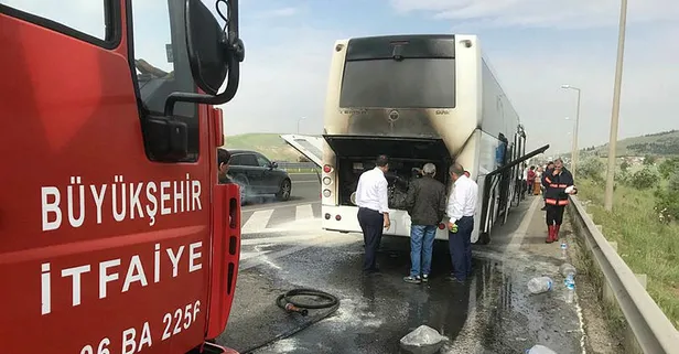Ankara'dan İstanbul yönüne giden yolcu otobüsü seyir halindeyken alev aldı. Motor bölümünde çıkan yangın sonrası birden alevler içinde kalan otobüsteki yolcular son anda indirilirken, can kaybı yaşanmadı.