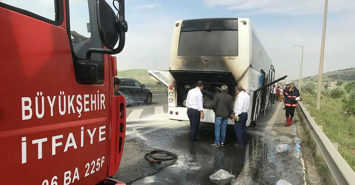 Ankara'da seyir halindeki yolcu otobüsünde çıkan yangın itfaiye ekiplerince söndürüldü.