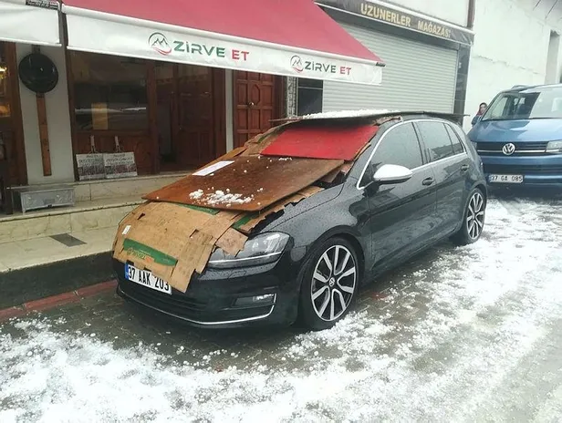 Bazı sürücüler araçlarının üzerini kilim ve battaniyelerle örterek dolunun vereceği zarardan korumaya çalıştı.