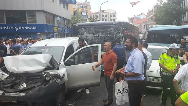 Alınan bilgiye göre, Yamanevler Mahallesi Alemdağ Caddesi'ndeki AVM'nin yakınında bir İETT otobüsü, bir özel halk otobüsü ile bir dolmuş ve 9 otomobilin karıştığı zincirleme trafik kazası meydana geldi.