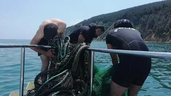 Bölgede dalış yapan Deniz Limanı Şube Müdürlüğü ekipleri, denizin altında trol ağı ve kapısı buldu. Denizden çıkarılan trol ağı ve kapıları polis ekipleri tarafından römorköre çekildi.