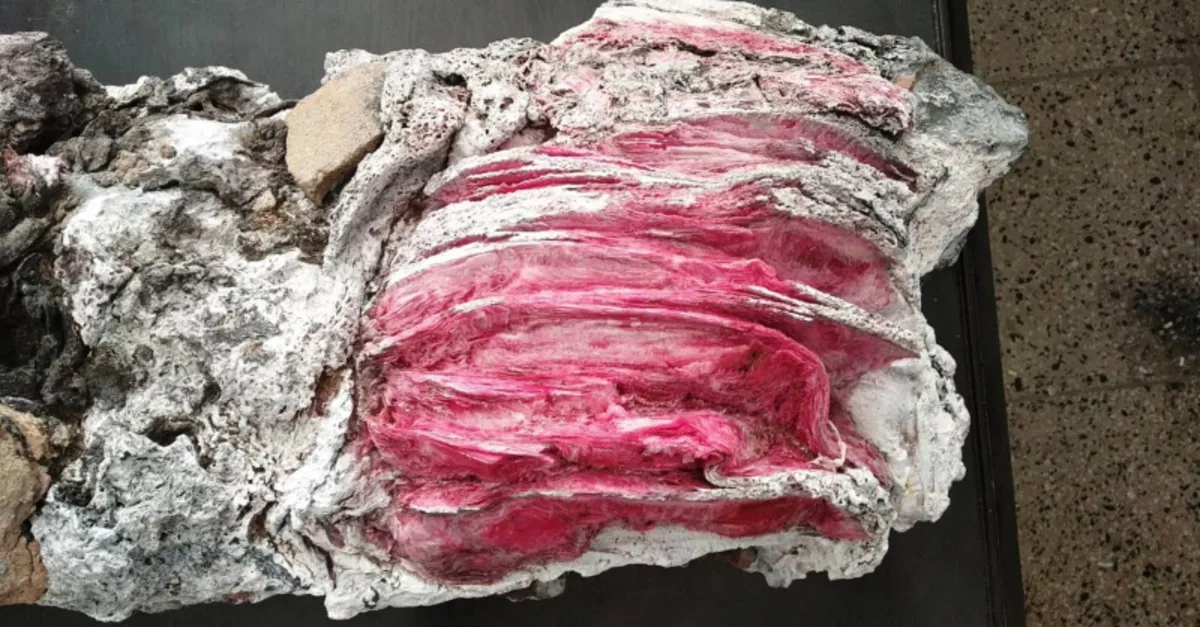 Yaklaşık 50 santimetre uzunluğunda, 3 kilo ağırlığındaki objenin bir tarafında eski bir yapıya ait olduğu tahmin edilen duvar kalıntısı ve yanmış tahta parçaları, diğer tarafında ise ipeksi yumuşaklıkta renkli bir bölüm gören Yüksel, 2 bin - 2 bin 500 yıllık öncesinde yaşamış bir deniz canlısının solungaçlarını anımsatan kırmızı renkli objenin fosil olabileceğini iddia etti.