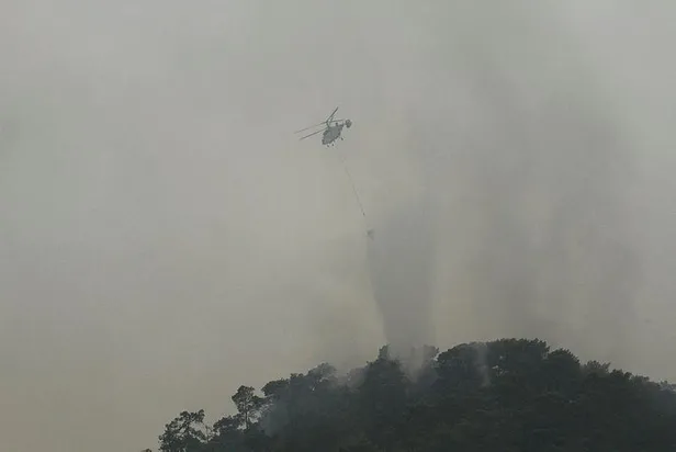 Sabahın ilk ışıklarıyla hava araçları da bölgede çalışmalara yeniden başladı. Bölgeye sevk edilen çok sayıda helikopter yangına havadan müdahale ediyor.