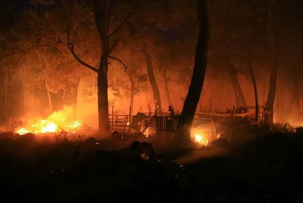 Sabahın ilk ışıkları ile yeniden havadan müdahalenin başlayacağı kaydedilen açıklamada, herhangi bir can kaybının yaşanmadığı yangında ilk tespitlere göre bir butik otel ve 350 hektar alanın etkilendiği aktarıldı.