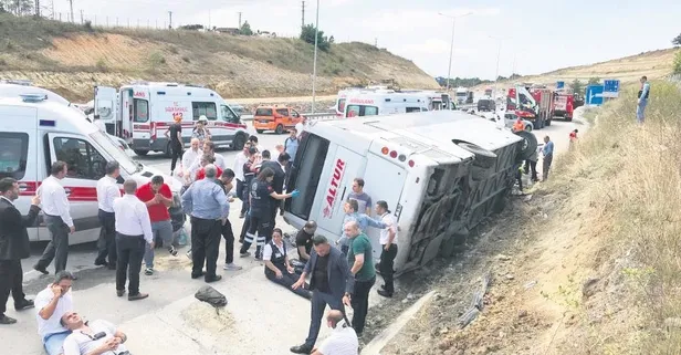 Devrilen minibüste can pazarı yaşandı. Kaza dün İstanbul Kuzey Marmara Otoyolu İhsaniye Mevkii Işıklar Köyü Kavşağı'nda meydana geldi. Arka lastiği patladığı öne sürülen servis minibüsün sürücüsü direksiyon hakimiyetini kaybetti. Kontrolden çıkan araç devrildi. 35 kişi yaralandı. 20'si hastaneye kaldırılarak tedavi altına alındı. Görgü tanığı İbrahim Ülgen, "Bu aracı kullanan her kimse ona helal olsun. Bir süre devrilmeden gitti" dedi.