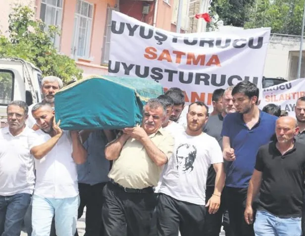 Yaşamını yitiren genç adam için evinin önünde helallik alındı. Mahalleli, pankartlarla uyuşturucuyu lanetledi.