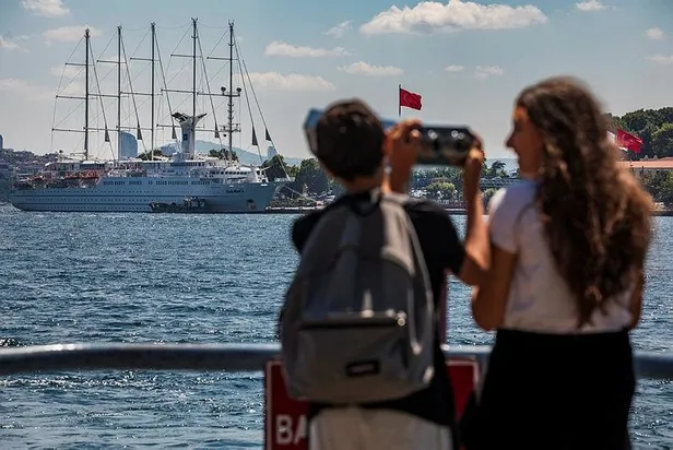 Dünyanın en büyük yelkenli kruvaziyer gemilerinden biri İstanbul'a demirledi