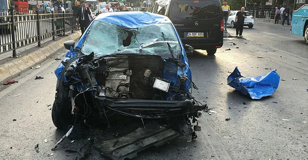 İstanbul Beşiktaş'ta sürücüsünün hakimiyetinden çıkan bir otomobil, bariyerleri aşarak karşı yoldan gelen bir minibüse çarptı. Kazanın şiddetiyle otomobilin motoru koparken, sürücüsü ise yaralandı.