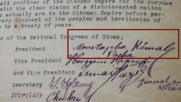 Bu mektupta aynı zamanda Atatürk'ün "Mustapha Kemal Pasha" yazarak Latin harfleriyle attığı bilinen ilk imzası bulunuyor.