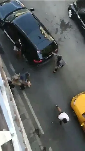 İzmir'in Karabağlar ilçesinde, aralarında husumet bulunan akrabaların karşılaşması sonucu çıkan silahlı kavgada 5 kişinin yaralandığı olayın görüntüleri ortaya çıktı.