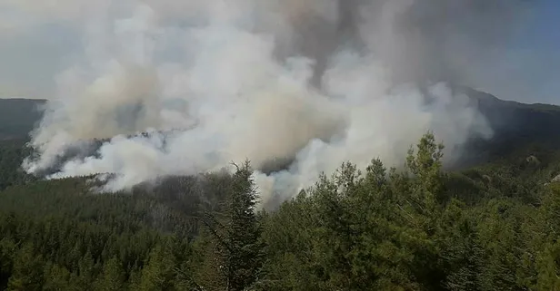 Rüzgarın etkisiyle yayılan yangına 6 helikopter, 20 arazöz, 10 su tankeri ve 120 orman işçisiyle müdahale ediliyor.