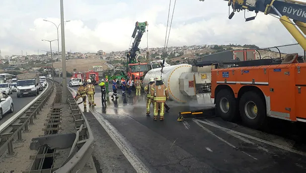 Son dakika: TEM'de gaz tankeri devrildi! Tüm şeritler trafiğe kapatıldı