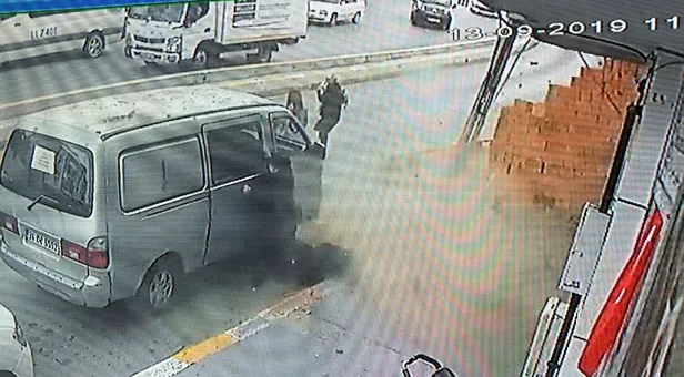 Yaşanan olay anı ise güvenlik kamerası tarafından saniye saniye kaydedildi. Görüntülerde kucağında bebek ile bir kadının geçmesi ve ardından kiremitlerin yere düşmesi görülüyor. Kucağında bebek olan kadının hemen arkasında yürüyen başka bir kadın ise düşen kiremitlerin altında kalıyor.