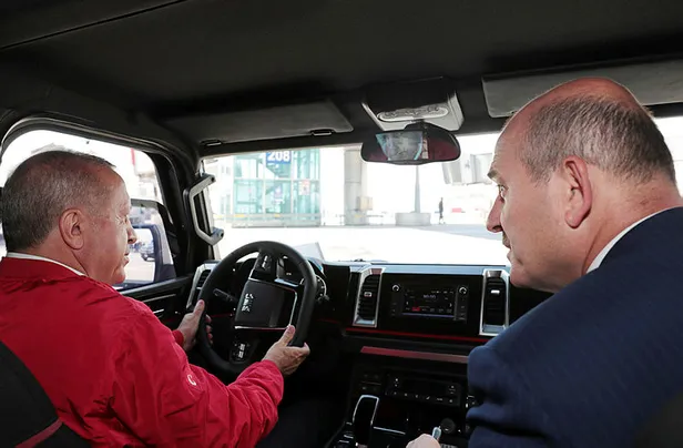 Yetkililerden araca ilişkin bilgiler alan Erdoğan, daha sonra sürücü koltuğuna geçti. İncelemesini araç içerisinden sürdüren Erdoğan, bir süre aracı kullandı, sonrasında da aracı imzaladı.