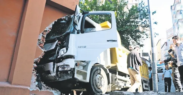 Kağıthane'de freni tutmayan kamyon evin duvarına çarpıp yatak odasına girdi