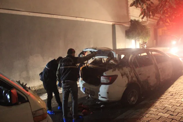 İtfaiye ekipleri alevli şekilde yanan otomobile müdahale ederken, kundaklama şüphesine karşı olay yeri inceleme polis ekipleri sevk edildi.