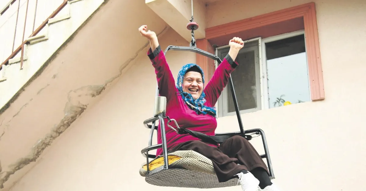 Bursa'da engelli Cevahir Maden, evine çıkamaz hale geldi. Komşuları el ele verdi. Apartmana dışarıdan yük asansörü monte ettirdi. Asansörle ikinci kattaki evine çıkan Cevahir Maden'in mutluluğu yüzüne yansıdı.