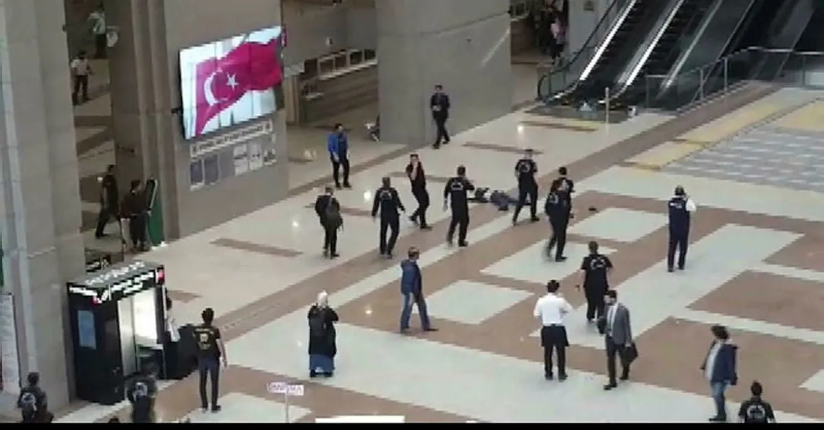 Adliyenin C kapısı girişinde, öğlen saatlerinde üst kattan bir kişi zemine düştü. Alanda bulunanların arasına düşen bu kişinin öldüğü sanılınca üzerine gazete örtüldü, olayın şokuyla ağlayanlar oldu.
