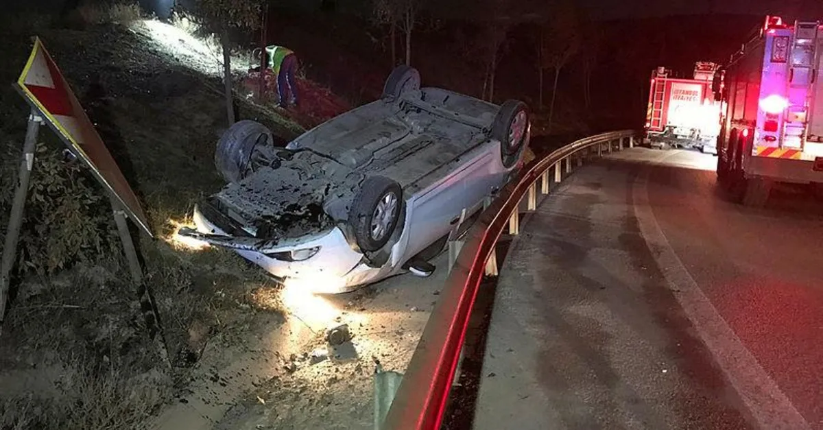 İstanbul Pendik, Aydınlı kavşağında sürücüyle birlikte iki kişinin bulunduğu araç bariyerlere çarparak takla attı. Kendi imkanlarıyla çıkan kazazedelerin ilk işi yanlarında buldukları uyuşturucu maddeyi saklamak oldu.