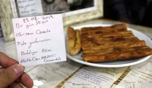 Baba Mevlüt Meşeci'nin şehit oğlunun 2 silah arkadaşıyla pide salonuna geldiğini de söyleyen Akman, "Burada pide ikram ettik. Notu alıp okudular. Tabi çok duygulandık" dedi.