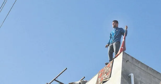 ‘Kadına şiddet’ olaylarına tepki için çatıya çıktı, etrafa kiremit fırlattı
