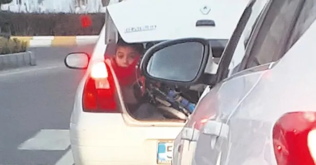 Nevşehir'de otomobilin bagajına bisiklet koyan bir baba, bagaj kapağının bisiklete çarpıp ezilmesini önlemek için, oğlunu da bagaja oturttu. Yolda seyir halinde olan diğer sürücüler, şaşkınlıklarını gizleyemedi. Hem bagaj kapağını hem de bisikleti tutmaya çalışan çocuğun bir taraftan da soğuk havadan korunmaya çalıştığı görüldü.