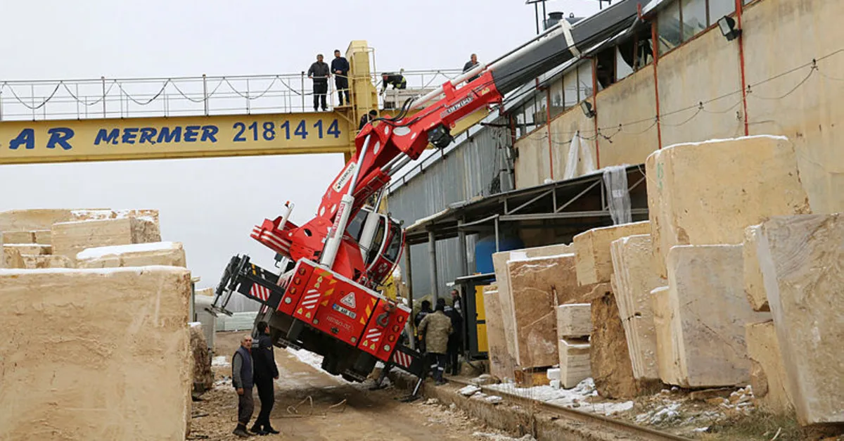 Sivas'ta bir mermer fabrikasının çatı sacını değiştiren 24 yaşındaki Semih Eken, vincin yan yatması sonucu altında kalarak feci şekilde yaşamını yitirdi.