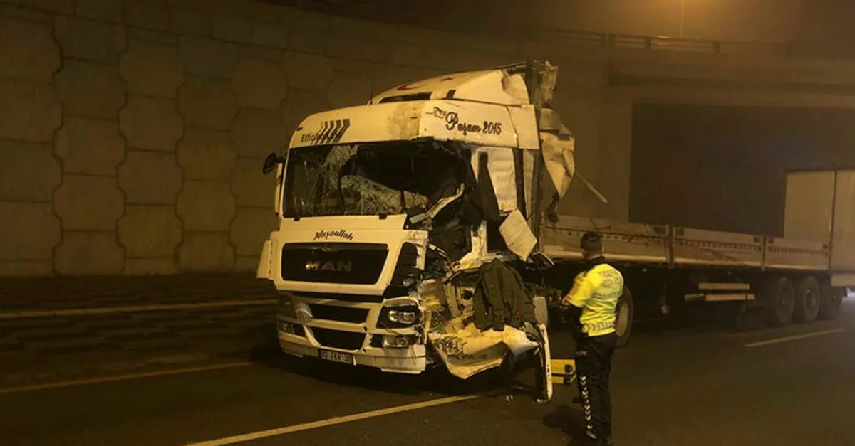 Başkent Ankara'da gece saatlerinde yaşanan kazada sis nedeniyle virajı alamayan TIR yol kenarındaki refüjdeki aydınlatma direğine çarptı. Kaza sonrası yan yatan dorse ile refüj arasına sıkışan sürücü feci şekilde can verdi.