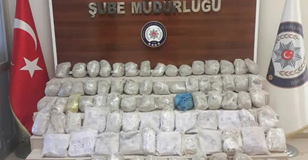 Narkotik köpeği "Oscar"ın da kullanıldığı aramada kamyonetin bagajında bulunan 3 çuvaldaki 84 pakette 86 kilo 40 gram eroin ele geçirildi.