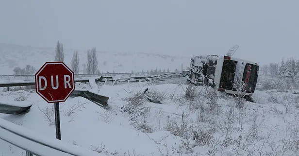 Yaklaşık 40 yolcunun bulunduğu öğrenilen otobüsün kaza yerinden kaldırılması için çalışmalar sürüyor. Kaza nedeniyle kara yolunda ulaşım kontrollü sağlanıyor.